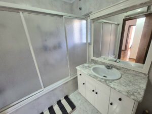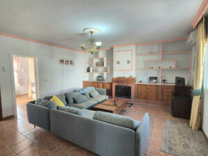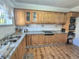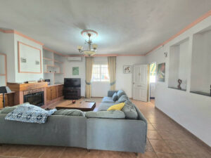 A través de la entrada principal se encuentra un recibidor/armario con espacio para abrigos y zapatos; a la izquierda se encuentra el primero de los dos salones; junto a este se encuentra la cocina totalmente equipada, con acceso a un pasillo y, en el exterior, a la derecha de la entrada, se encuentran 3 dormitorios y un baño. De vuelta a la cocina, a lo largo del pasillo, se encuentra el segundo gran salón con chimenea, dos dormitorios y un baño. Este salón y uno de los dormitorios cuentan con aire acondicionado. El agua caliente se calienta mediante sistema solar.