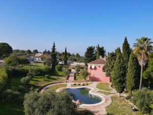 La villa cuenta con una piscina espectacular, ideal para refrescarse en los días calurosos, rodeada de un hermoso jardín que invita a relajarse y disfrutar del aire libre. Además, hay varios algarrobos que proporcionan sombra, creando un espacio perfecto para disfrutar de momentos de tranquilidad. Las múltiples terrazas son el lugar ideal para tomar el sol o disfrutar de una cena al aire libre mientras contemplas los impresionantes atardeceres.