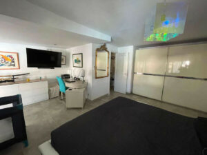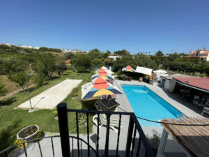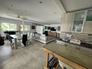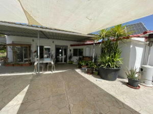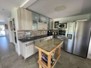 La villa consiste en un amplio y luminoso salón comedor con cocina americana totalmente amueblada, 4 dormitorios dobles, 3 baños, varias terrazas, así como una zona de BBQ techada y una espléndida piscina de agua salada, gimnasio, terraza en alto cerrada tipo chill out, lavadero cerrado, Aire acondicionado en toda la casa, ventanas de climalit, portón automático, casa totalmente reformada con materiales de alta gama, varias plazas de coche en la parcela. El apartamento tiene su entrada independiente lo que le aporta más privacidad si queremos alquilarlo; se distribuye en salón, cocina, un dormitorio y un baño, además de un pequeño patio cerrado. Toda la propiedad tiene suministro eléctrico por 16 placas solares con una potencia de 8,8Kw/h además del suministro de red eléctrica y el abastecimiento de agua es de pozo comunitario y la propiedad cuenta con un aljibe para agua de 10.000litros y 3 depósitos de 1.000litros cada uno. La propiedad también dispone de una amplia variedad de árboles frutales como naranjos, aguacate, granados, higuera, mandarinos, etc.