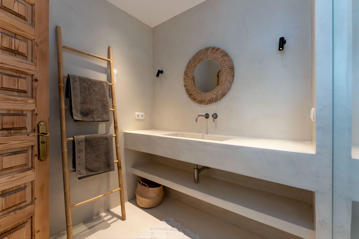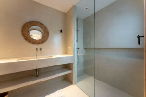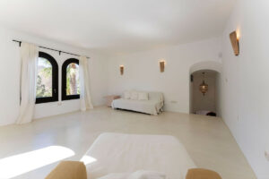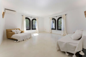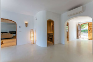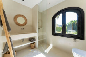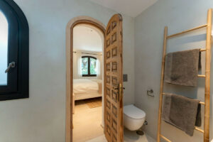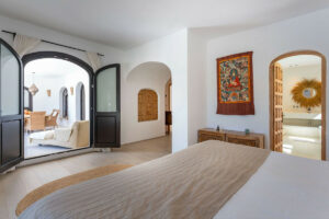• Villa principal de estilo boho mediterráneo (360 m²) con tres dormitorios, cada uno con baño privado y armarios empotrados.
