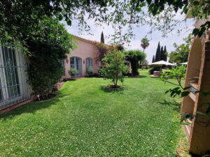 La casa está rodeada de un precioso jardín, con un gran patio y piscina, perfecto para disfrutar del sol mediterráneo. Los campos de golf cercanos hacen de este un lugar ideal para los golfistas, y las playas cercanas brindan muchas oportunidades para relajarse.