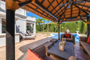 Villa Alto se alza con orgullo dentro de una de las comunidades cerradas más exclusivas de la costa, rodeada de un campo de golf de clase mundial y con seguridad las 24 horas. Esta elegante villa de cinco dormitorios combina privacidad, amplitud y estilo en tres niveles, ofreciendo vistas panorámicas a la montaña de La Concha y al exuberante valle del golf.