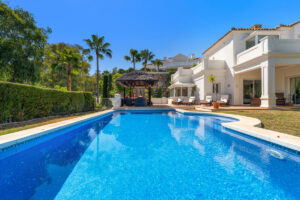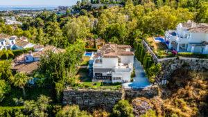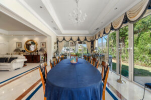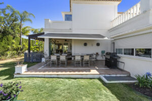 En el exterior, los jardines paisajísticos rodean la villa con una gran piscina, zona de descanso con sombra y un comedor al aire libre con barbacoa. Las terrazas invitan a relajarse, cenar o simplemente disfrutar de las vistas a la montaña y al valle. Villa Alto es una declaración de vida refinada para quienes buscan confort, seguridad y elegancia en una ubicación privilegiada.