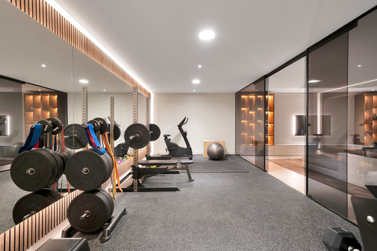 La planta baja está dedicada al ocio y el bienestar, con un quinto dormitorio en suite con vestidor, gimnasio, sauna, sala de entretenimiento, aseo de invitados, lavandería y múltiples espacios de almacenamiento. Un encantador patio andaluz llena esta planta de luz natural, creando un ambiente acogedor y sereno.