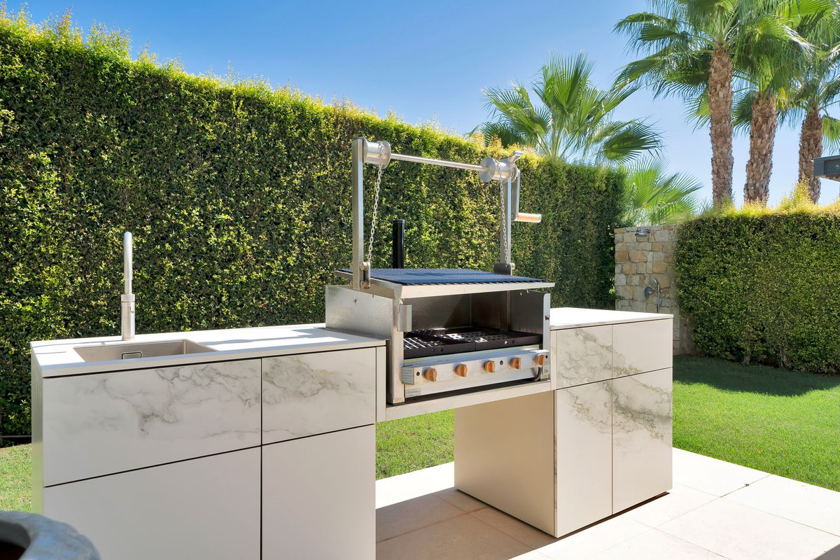 En el exterior, una cocina de verano totalmente equipada con barbacoa de carbón es el lugar perfecto para disfrutar de comidas al aire libre. Además, una zona de comedor y salón cubierta, junto con una terraza adicional junto a la piscina infinita, ofrecen múltiples espacios para relajarse y disfrutar del entorno. Las hamacas junto a la piscina invitan a desconectar y deleitarse con la tranquilidad del paisaje.