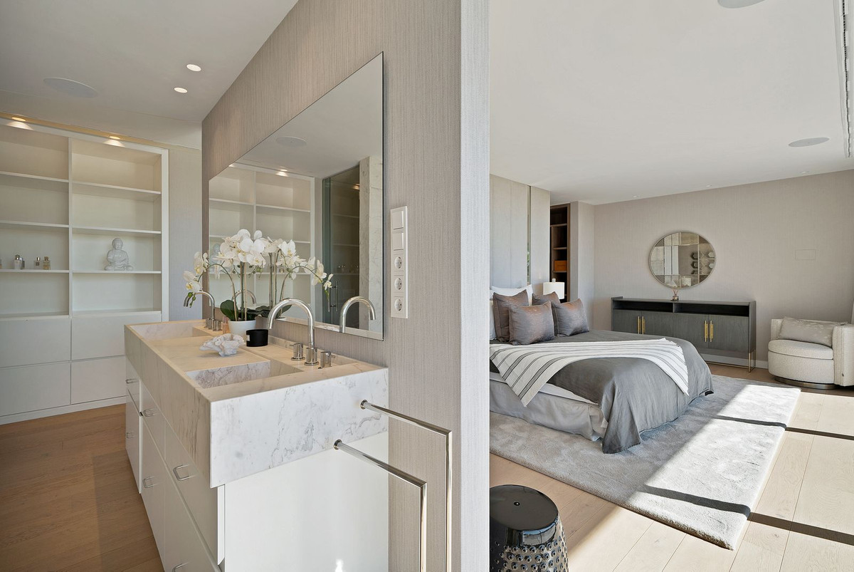 En la primera planta, se encuentran tres amplios dormitorios en suite, incluyendo una suntuosa suite principal que cuenta con un vestidor, un baño tipo spa y acceso a una terraza privada de 30m² con vistas espectaculares.