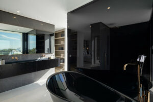 La villa cuenta con cinco amplios dormitorios y ocho baños, seis de ellos en suite. Cada espacio refleja un diseño contemporáneo refinado, con acabados de alta calidad y grandes ventanales que enmarcan vistas despejadas al mar Mediterráneo. La distribución ha sido diseñada para maximizar la luz natural y lograr una transición fluida entre los ambientes de estar, comedor y descanso. Además, dispone de dos aseos de cortesía para mayor comodidad.