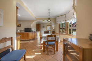 Con una superficie útil de 426 metros cuadrados, hay mucho espacio para disfrutar de la vida en familia y para el entretenimiento. Los amplios salones ofrecen vistas panorámicas a los jardines, huertos y a las montañas circundantes, creando un ambiente de serenidad y relajación.