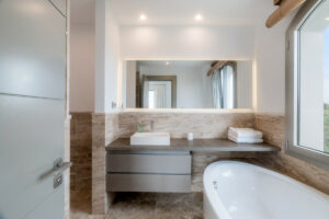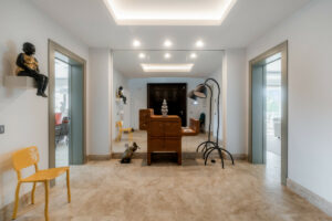 Un camino de entrada impresionante conduce a la majestuosa entrada, marcando el inicio de una experiencia de lujo refinado. La villa cuenta con cinco elegantes dormitorios, cada uno con su baño en suite, además de un baño adicional para invitados. Los interiores están cuidadosamente diseñados con acabados de alta calidad, amplias ventanas que permiten una abundante luz natural y una transición fluida entre los espacios interiores y exteriores.