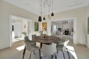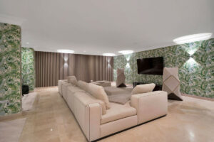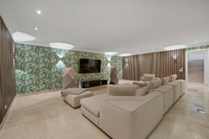 La villa cuenta con amplios espacios habitables, amplias terrazas, 5 espaciosos dormitorios con baño, una sala de cine y un gimnasio privado totalmente equipado.