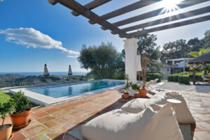 Ubicada en la exclusiva comunidad cerrada de Monte Mayor, esta excepcional villa independiente orientada al sur ofrece impresionantes vistas panorámicas al mar desde una generosa parcela de 4.075 m². Esta villa destaca sobre la mayoría por la elegante combinación de la arquitectura andaluza y el diseño interior escandinavo.