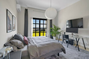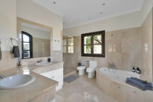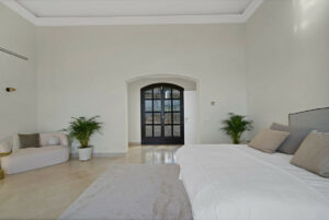 Todas las habitaciones tienen acceso a la terraza, baños en suite de mármol y techos altos, combinando elegancia y comodidad. El enorme dormitorio principal tiene dos balcones privados, uno con impresionantes vistas al mar y una bañera de hidromasaje y ducha separada en el baño en suite.
