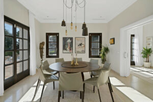 En la planta baja, la propiedad sigue impresionando con un amplio gimnasio privado totalmente equipado de estilo loft, una sala de cine con zona de oficina y un garaje doble, que ofrece tanto estilo de vida como practicidad.