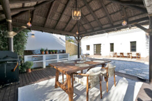 El amplio salón da paso a una terraza cubierta y a un césped soleado con zona de piscina privada. El elegante salón también conecta con el comedor, que a su vez conduce a la cocina totalmente equipada, lo que ofrece un espacio cómodo tanto para la vida familiar como para el entretenimiento. Hay una terraza abierta junto a la cocina, así como un cenador cubierto y una zona de barbacoa. Todo ello crea el escenario perfecto tanto para el descanso como para el entretenimiento.