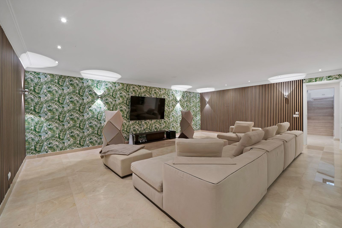 La villa cuenta con amplios espacios habitables, amplias terrazas, 5 espaciosos dormitorios con baño, una sala de cine y un gimnasio privado totalmente equipado.