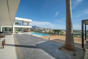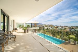 La propiedad también cuenta con amplias terrazas cubiertas y descubiertas con vistas panorámicas al mar, la montaña y el golf, una increíble piscina infinita, jacuzzi, cocina exterior y barbacoa. La terraza principal ha sido totalmente transformada con nuevos azulejos y luces LED que se pueden cambiar a cualquier color.