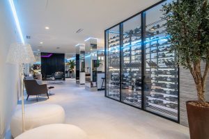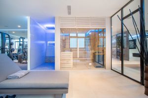 La casa consta de tres plantas, accesibles mediante ascensor o escaleras flotantes, y cuenta con un hermoso y espacioso hall de entrada de doble altura. Grandes ventanas correderas integradas en la pared conectan fácilmente la vida interior y exterior. Podrás disfrutar de increíbles vistas panorámicas al mar desde casi cualquier lugar de la villa.