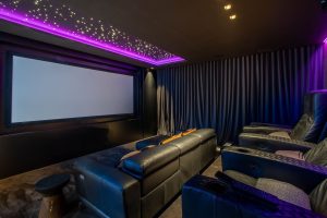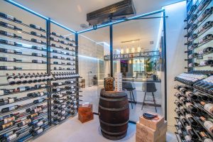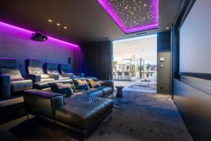 El espectacular sótano está totalmente equipado y cuenta con zona de juegos, bodega, bar, sala de estar, spa, gimnasio, lavadero y sala de cine propiamente dicha.