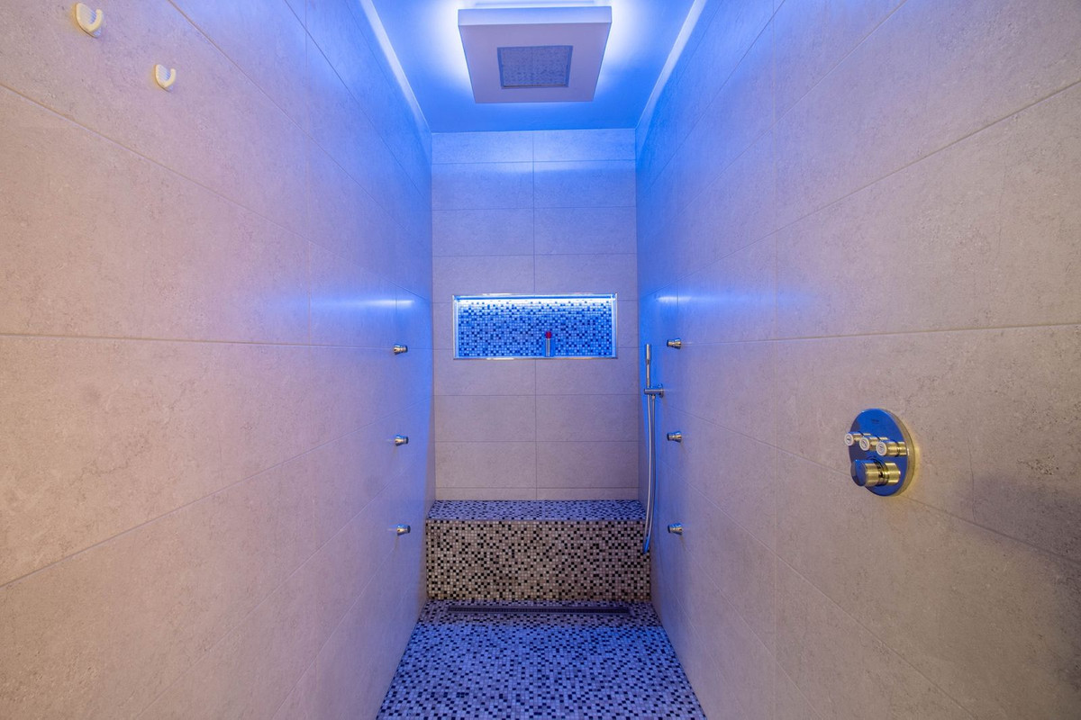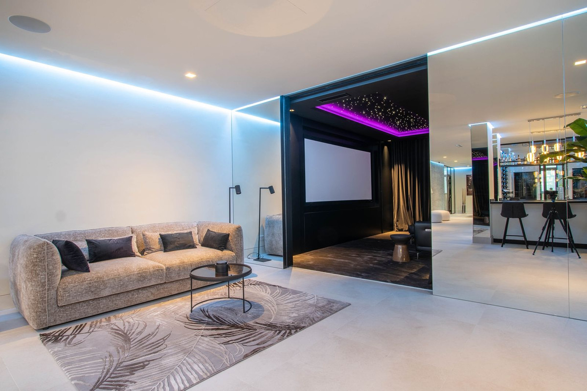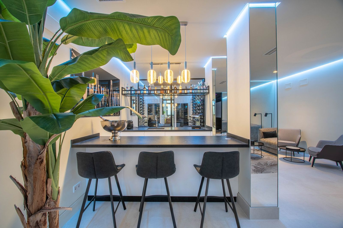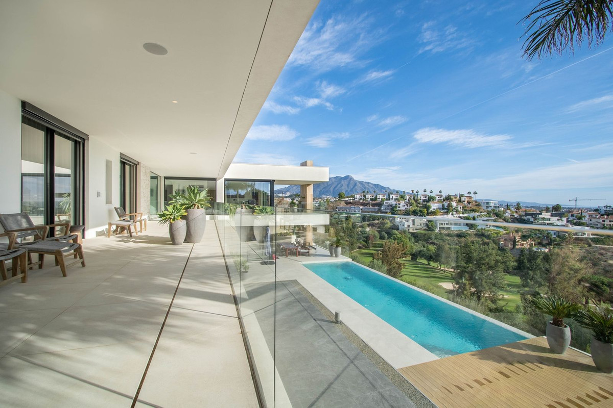 La propiedad también cuenta con amplias terrazas cubiertas y descubiertas con vistas panorámicas al mar, la montaña y el golf, una increíble piscina infinita, jacuzzi, cocina exterior y barbacoa. La terraza principal ha sido totalmente transformada con nuevos azulejos y luces LED que se pueden cambiar a cualquier color.