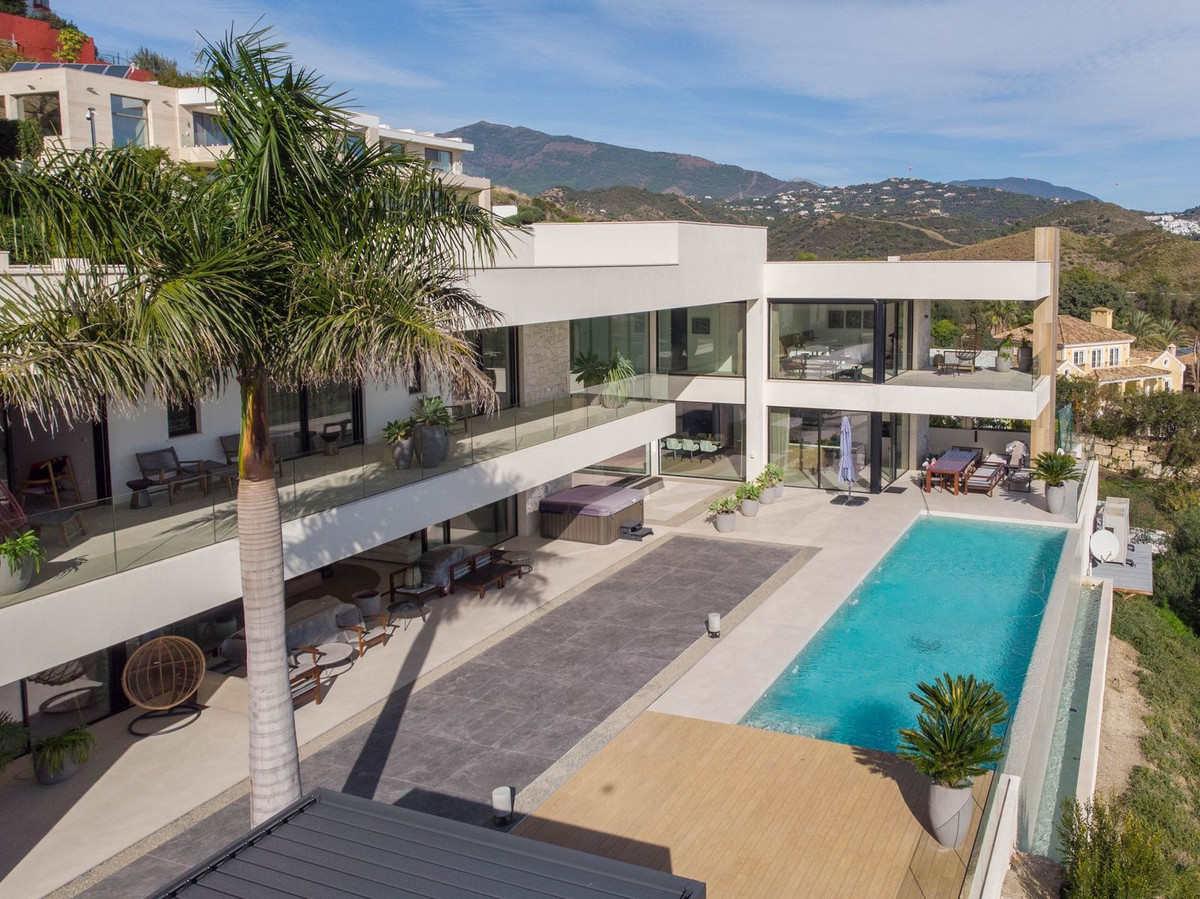 Impresionante villa contemporánea con vistas panorámicas a la montaña, al golf y al mar en La Alqueria, Benahavis