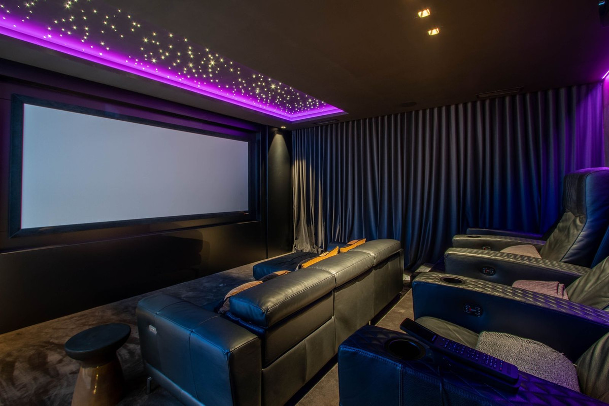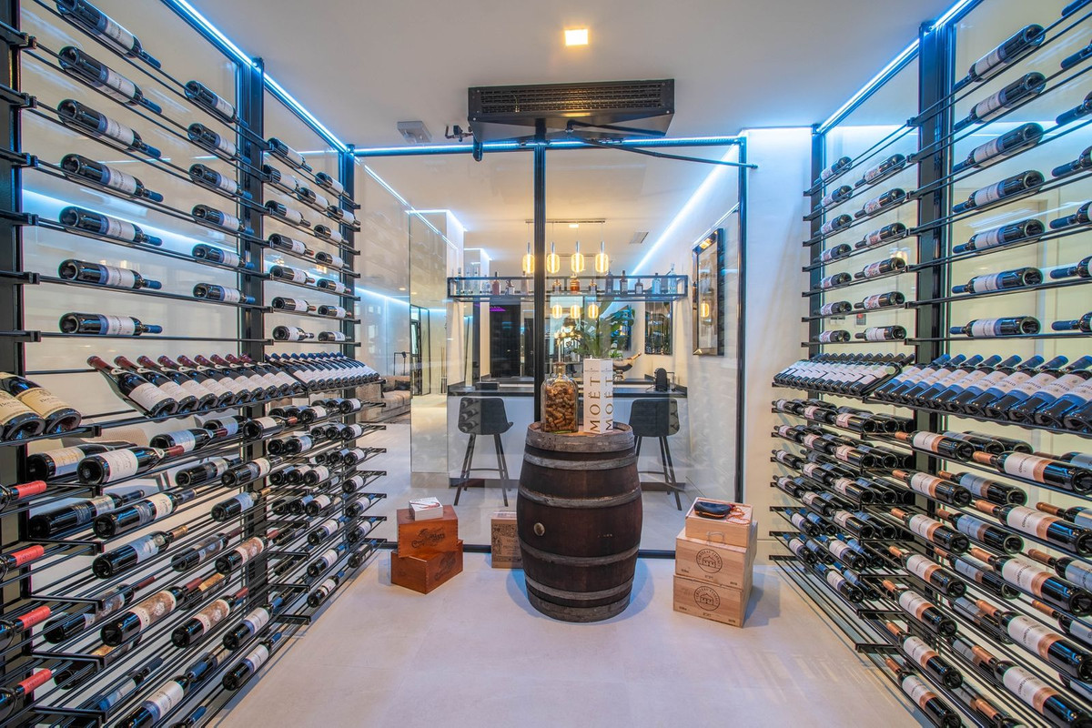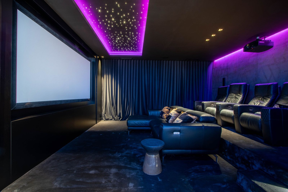 El espectacular sótano está totalmente equipado y cuenta con zona de juegos, bodega, bar, sala de estar, spa, gimnasio, lavadero y sala de cine propiamente dicha.