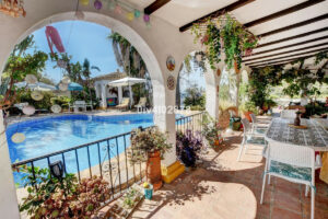 En una ubicación excepcional que combina a la perfección la tranquilidad del campo con la comodidad de la vida de pueblo, esta encantadora villa de estilo andaluz es una verdadera joya. Situada en un punto elevado con una posición serena y privilegiada, la propiedad ofrece impresionantes vistas al mar hacia Fuengirola y está rodeada de frondosos árboles maduros que proporcionan privacidad y un carácter atemporal y cautivador.