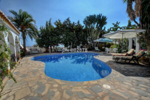 Los espacios exteriores son una característica distintiva de esta casa. Además de las terrazas principales, la propiedad es un mosaico de encantadoras zonas que invitan a la relajación. El área de la piscina es un oasis de tranquilidad, y el paisajismo maduro crea un ambiente pacífico y privado. Un aspecto destacado es la amplia zona exterior plana, que ofrece infinitas posibilidades para crear un extenso césped, cultivar un vibrante huerto de árboles frutales o establecer un productivo jardín de verduras. La propiedad también cuenta con un apartamento de invitados de un dormitorio, completo con su propia cocina, baño y una terraza privada que comparte las mismas hermosas vistas hacia Fuengirola. Las consideraciones prácticas están bien atendidas con un garaje y un aparcamiento cubierto con espacio para tres coches, ofreciendo un amplio estacionamiento fuera de la vía pública.