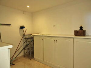 La planta baja ofrece tres dormitorios adicionales con vistas al mar, cada uno con acceso directo a la terraza, dos acogedoras zonas de estar, un gran cuarto de baño familiar y un lavadero independiente, lo que crea la distribución perfecta para la vida familiar o para recibir invitados con total comodidad.