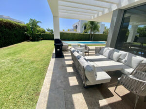 Amor a primera vista! Impecable villa independiente de lujo en una ubicación privilegiada. Situada entre Marbella y Estepona, con las playas de Costalita a solo 5 minutos. El mejor hotel de la costa, Villa Padierna, con sus restaurantes y spa de 2000 m², así como algunos de los campos de golf más reconocidos, se encuentran en un radio de 5 km. Al entrar, sus sentidos se despiertan con el jardín maduro y cuidado, la entrada, la luminosidad gracias a su orientación suroeste y las amplias habitaciones con una distribución práctica. De reciente construcción, su estado es impecable y se ha cuidado hasta el último detalle. La planta principal consta de un amplio salón con una gran cocina americana y una sala de estar integrada. Acceso directo a un amplio espacio exterior con terraza, barbacoa, zonas de relax y la piscina, que disfruta del sol todo el día. En esta planta, encontrará un dormitorio, baños completos y un despacho. En la planta superior, encontrará dos dormitorios dobles, baños y amplios vestidores. Desde la terraza, disfrute de las vistas al mar y de las maravillosas puestas de sol. En la planta baja, los propietarios han habilitado una sala de juegos, un gimnasio, dos dormitorios más y un lavadero. El garaje tiene espacio para dos coches. La zona residencial es encantadora, de nueva construcción y con fácil acceso. ¡No te la pierdas!