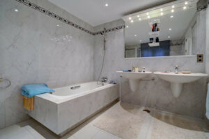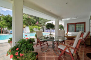 La casa familiar orientada al sur cuenta con amplios jardines privados maduros, una piscina y un área de entretenimiento al aire libre. Distribuida en dos niveles, la villa ofrece cinco amplios dormitorios, cuatro baños, una cocina totalmente equipada y una gran sala de estar y comedor con chimenea que se abre directamente al jardín y la terraza. Las características adicionales incluyen aire acondicionado frío y caliente y garaje privado.