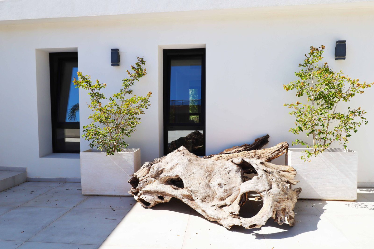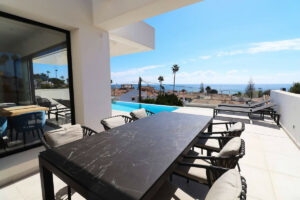 Una villa de nueva construcción con vistas al mar, piscina infinity y terrazas panorámicas, a pocos pasos a la playa.