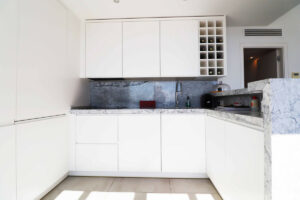 El diseño contemporáneo potencia los interiores gracias a ventanales de suelo a techo que llenan la vivienda de luz natural y enmarcan impresionantes vistas al mar.