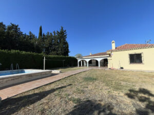 Encantadora finca–cortijo en venta en Estepona, en oferta exclusiva, con 5 dormitorios, 2 baños, 250 m² construidos, 50 m² de terraza y una amplia parcela vallada de 4.000 m² con huerta y árboles frutales. Orientada al sur y rodeada de naturaleza, ofrece espectaculares vistas al campo, las montañas, la costa y plantaciones de naranjos. La propiedad cuenta con piscina privada, dos piscinas comunitarias, apartamento independiente para invitados, amplio garaje, salón-comedor con chimenea, estudio, cocina equipada, armarios empotrados, barbacoa, agua de pozo, depósito adicional y está totalmente amueblada. Situada en una zona tranquila pero con excelente acceso por carretera y cerca del mar, es ideal para quienes buscan comodidad, privacidad y una finca con carácter en una de las áreas más prestigiosas y demandadas de la Costa del Sol.
