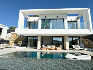 Villa en venta en , Estepona con 5 dormitorios, 3 baños, 2 baños en suite, 1 aseo y con orientación oeste, con piscina privada, garaje privado (1 plazas) y jardín privado. Respecto a las dimensiones, la propiedad presenta 316 m² construidos y 495 m² de parcela. Tiene las siguientes características servicios cercanos, transporte cercano, aire acondicionado, semi amueblado, cocina totalmente equipada, sótano, sala de invitados, a estrenar, comedor, servicio de seguridad 24h, aseo para invitados, terraza privada, cocina equipada, depósito de agua, vistas al campo, vistas a la montaña, vistas al golf, piscina climatizada, riego automático, sistema de sonido dolby stereo surround, lavadero, internet – wi-fi, terraza cubierta, persianas eléctricas, armarios empotrados, vistas a la piscina, vistas panorámicas, suelo radiante (baños), parque infantil cercano, cerca de playa / mar, cerca del golf, terraza descubierta, puertas de cristal, tiendas cerca, cerca de la ciudad, cerca del puerto, colegios cerca y cámaras de vigilancia.