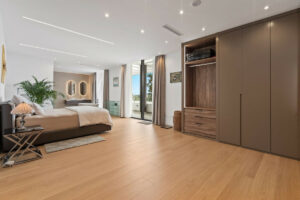La propiedad cuenta con una superficie construida total de 980 m², además de 152 m² de terrazas. Su orientación suroeste permite la entrada de luz natural durante todo el día y ofrece vistas abiertas al campo de golf, a los jardines y al mar y las montañas. La villa dispone de cinco dormitorios de buenas proporciones y siete cuartos de baño, todos ellos con un alto nivel de calidad.