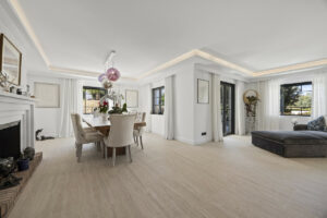 Descubra esta excepcional villa orientada al suroeste, una impresionante mezcla de elegancia contemporánea y confort moderno. Recientemente reformado con materiales de primera calidad, esta exquisita casa cuenta con un diseño elegante que complementa perfectamente su entorno. Situado junto al campo de golf de Guadalmina, ofrece tranquilidad y comodidad, con tiendas, restaurantes y servicios esenciales a pocos pasos de distancia.