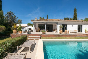 impresionante Villa de un nivel estilo Ibiza en la Prestigiosa Hacienda Las Chapas, Marbella Este
