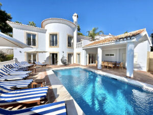 Esta espaciosa villa independiente con orientación sur se encuentra en una preciosa parcela esquinera elevada en una tranquila y exclusiva comunidad residencial, a solo 250 m de la playa. También está a solo unos 22 minutos a pie del principal bulevar comercial y de restaurantes de La Cala. El acceso a la lujosa urbanización se realiza a través de impresionantes puertas eléctricas de doble apertura. La atractiva y elegante villa ofrece 5 espaciosos dormitorios principales, todos con baño privado de lujo o ducha y armarios empotrados. La planta principal cuenta con una espaciosa distribución diáfana que conecta a la perfección el salón, el comedor y la moderna cocina americana. Esta increíble villa en venta también cuenta con una enorme zona de entretenimiento adicional en la planta baja, con ventanales, lo que ofrece potencial para un gimnasio y una sala de cine, o incluso un apartamento de invitados. La villa independiente también cuenta con un amplio garaje, aire acondicionado frío/calor, doble acristalamiento, cocina exterior con barbacoa, ducha y aseo exteriores con lavabo, una fantástica zona de entretenimiento exterior cubierta con altos techos abovedados y un hermoso patio-jardín abierto con piscina, todo ello con preciosas vistas al mar Mediterráneo. Desde el patio-jardín también se accede a una pequeña zona ajardinada con césped. La exclusiva comunidad cerrada en la que se encuentra esta villa independiente también cuenta con amplios jardines de precioso diseño con pista de petanca y putting green.