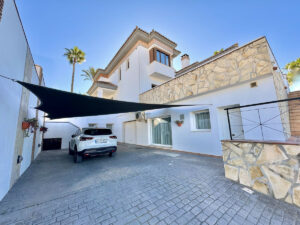 Entrada privada a través de puertas eléctricas que conducen a un amplio garaje para 2 autos, puede estacionar alrededor de 7 autos en la entrada, 4 de ellos bajo una gran vela de sombra. Desde el área de estacionamiento tiene acceso directo al garaje, la oficina y la puerta de entrada al apartamento independiente de 1 dormitorio. Las escaleras también conducen a la entrada de la villa principal, la piscina y el jardín.