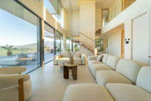 En la planta de entrada, un elegante salón con techos de doble altura, comedor y cocina de diseño totalmente equipada, además de un aseo de cortesía. Todas las estancias ofrecen impresionantes vistas panorámicas. La escalera flotante conduce a la primera planta.