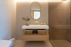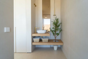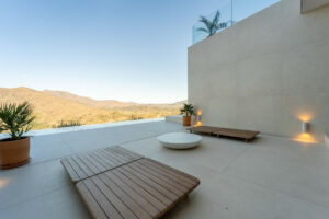 En la primera planta encontramos un extraordinario dormitorio principal, con dos vestidores independientes y un amplio baño en suite. También hay un segundo dormitorio con baño privado. Desde esta planta, una escalera exterior lleva a un solárium de ensueño, con jacuzzi y sofás exteriores, ideal para disfrutar del sol todo el día y unas vistas que te dejarán sin aliento.