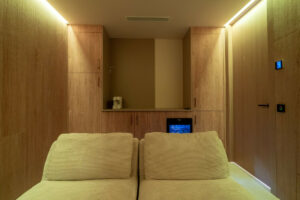 La planta baja ofrece un segundo salón con acceso directo al exterior, tres dormitorios, dos baños, una sala de cine, sauna, baño turco y una zona de gimnasio. Todas las plantas estarán conectadas por un ascensor panorámico de cristal (en proceso de instalación).