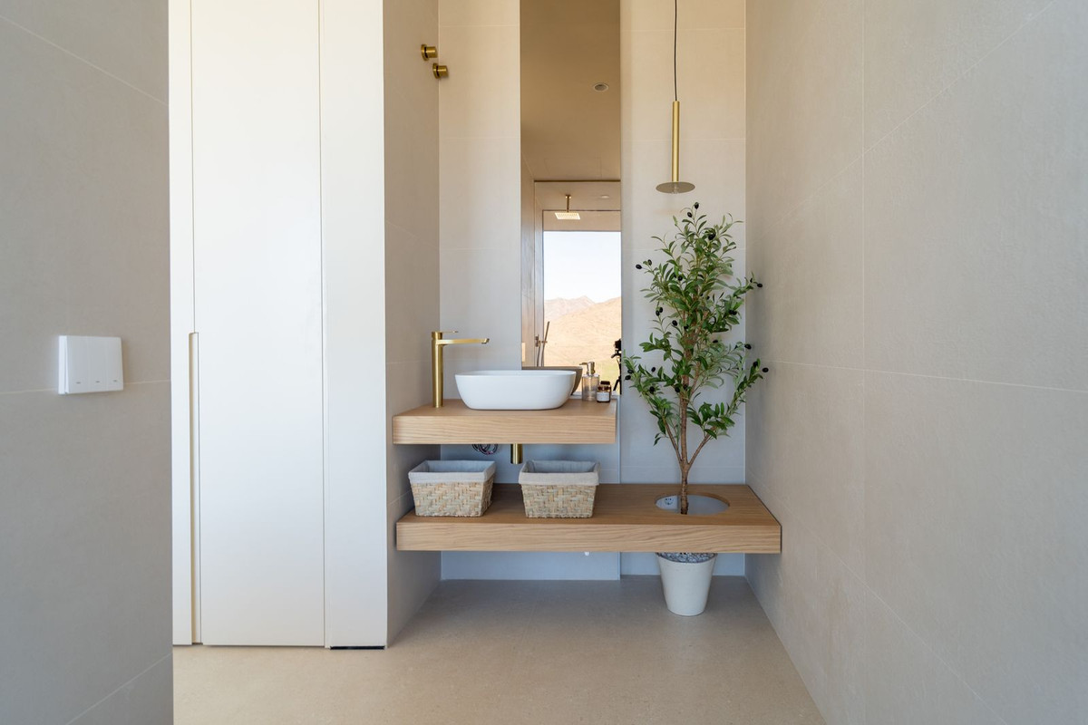 En la primera planta encontramos un extraordinario dormitorio principal, con dos vestidores independientes y un amplio baño en suite. También hay un segundo dormitorio con baño privado. Desde esta planta, una escalera exterior lleva a un solárium de ensueño, con jacuzzi y sofás exteriores, ideal para disfrutar del sol todo el día y unas vistas que te dejarán sin aliento.