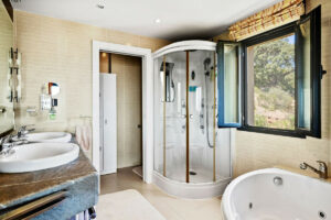 La villa ha sido concebida como un auténtico refugio de bienestar. Dispone de gimnasio privado, sauna y jacuzzi, además de una espectacular piscina infinity rodeada de amplias terrazas y zonas lounge donde el tiempo parece detenerse.
