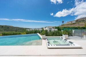 Ubicada en la prestigiosa urbanización cerrada de Lomas de la Quinta, esta villa de nueva construcción combina a la perfección un diseño contemporáneo, espacios amplios y vistas panorámicas inigualables. Situada en una generosa parcela de casi 1.400 m², la propiedad ofrece espectaculares vistas al mar desde las principales zonas de estar, incluyendo el salón, la cocina y la terraza de la piscina, creando un entorno ideal para disfrutar del estilo de vida interior-exterior.
