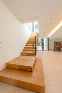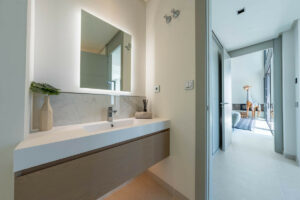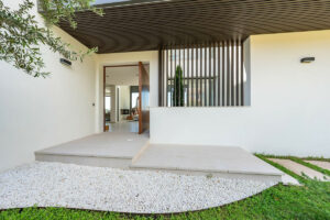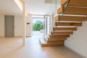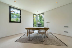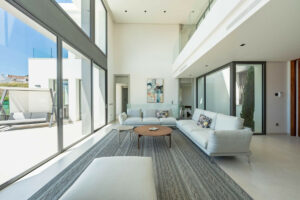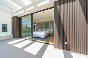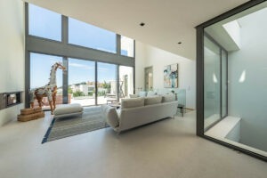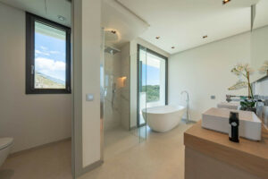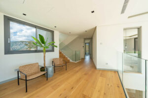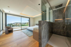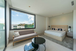 La villa cuenta con 5 dormitorios elegantemente diseñados, con la posibilidad de añadir más habitaciones según las necesidades del comprador. Uno de sus grandes atractivos es el amplio sótano diáfano, con luz natural y múltiples posibilidades de uso: cine privado, gimnasio, zona de bienestar o incluso la creación de una vivienda independiente para invitados.