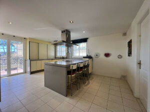 La cocina, espaciosa y funcional, cuenta con zona de despensa y acceso directo al jardín y al área de aparcamiento, ideal para el día a día o para recibir invitados con total comodidad.