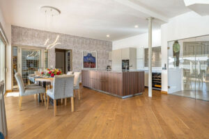 La planta principal da la bienvenida con un luminoso salón con chimenea, una zona de comedor independiente y acceso directo a terrazas cubiertas y descubiertas con vistas al jardín y a la piscina. La cocina Bulthaup totalmente equipada ofrece amplio espacio de almacenamiento y trabajo, siendo ideal tanto para el día a día como para recibir invitados. La vivienda dispone de cinco dormitorios bien proporcionados, incluido un amplio dormitorio principal, así como varios baños terminados en un estilo moderno.