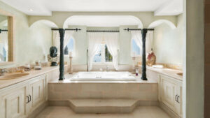 Majestuosa y sofisticada, Villa Annabel es ideal para recibir invitados —especialmente porque sus interiores fluyen de manera natural hacia una amplia terraza y los jardines maduros que la rodean. De hecho, la casa fue escenario de algunas de las veladas más glamurosas de Marbella.