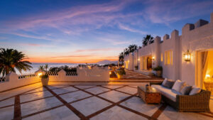 La historia de esta espléndida villa frente al mar parece sacada de las páginas de una novela, ya que fue construida originalmente para la hija de un jefe de Estado español, quien se estableció aquí en lugar de Madrid en la década de 1950, atraída por el clima benigno y el estilo de vida de Marbella. En aquel entonces, la ciudad ya se perfilaba como un centro refinado, muy apreciado por un público internacional, que le brindaba la compañía de algunos de los personajes más elegantes y fascinantes de Europa y del mundo: desde miembros de la realeza y magnates empresariales hasta grandes celebridades.